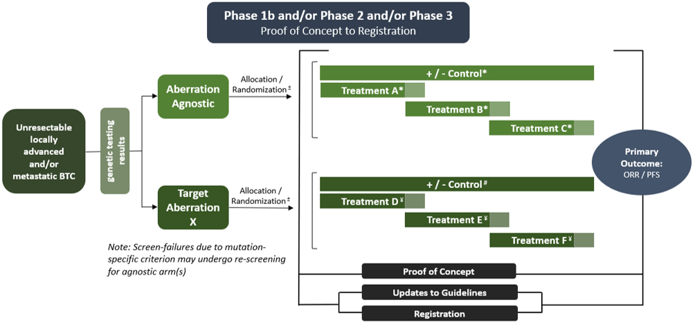 - Design allows for multiple targeted agents to be studied within BTC simultaneously along with aberration agnostic agents.