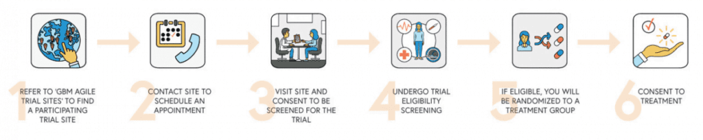 To participate in GBM AGILE, you need to enroll through one of GBM AGILE’s trial sites. Please refer to GBM AGILE Trial Sites for a continuously updated list of trial locations.